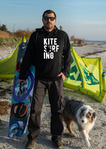 Piękna Bawełniana bluza męska z kapturem i kiszonka kangurką w klasycznej czerni kitesurfing - idealnie nadaje się na prezent dla miłośników sportów wodnych