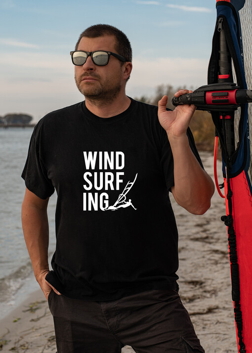 Bluza Czarna Męska dla miłośników windsurfingu- dzianinowa bluza z motywem windsurfing - dla fanów sportów wiatru i wody