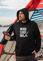Piękna Bawełniana bluza męska z kapturem i kieszonka kangurką w klasycznej czerni windsurfing - idealnie nadaje się na prezent dla miłośników sportów wodnych zarówno dla tych co kochaja flat jak i wave !