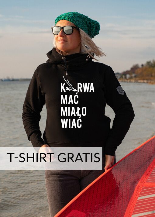 Czarna męska bluza dla miłośników windsurfingu i nie tylko - bluza z kapturem i kieszonką czarna to must have na nadchodzącą porę roku!