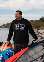 Piękna Bawełniana bluza męska z kapturem i kieszonka kangurką w klasycznej czerni windsurfing - idealnie nadaje się na prezent dla miłośników sportów wodnych zarówno dla tych co kochaja flat jak i wave !