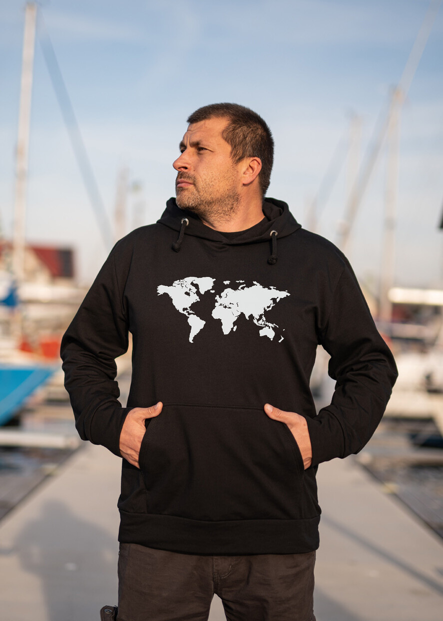 Czarna męska bluza dla miłośników wjazdów dookoła świata i nie tylko - Bluza z motywem podróży to must have na nadchodzącą porę roku!