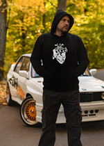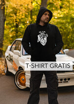 Taka Klasyczna Bluza w czarnym kolorze z kapturem to idealny pomysł na prezent dla motomaniakaDo Tej wygodnej bluzy męskiej z kapturem - dołączamy Tshirt z motywem motoryzacyjnym