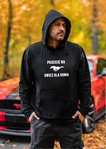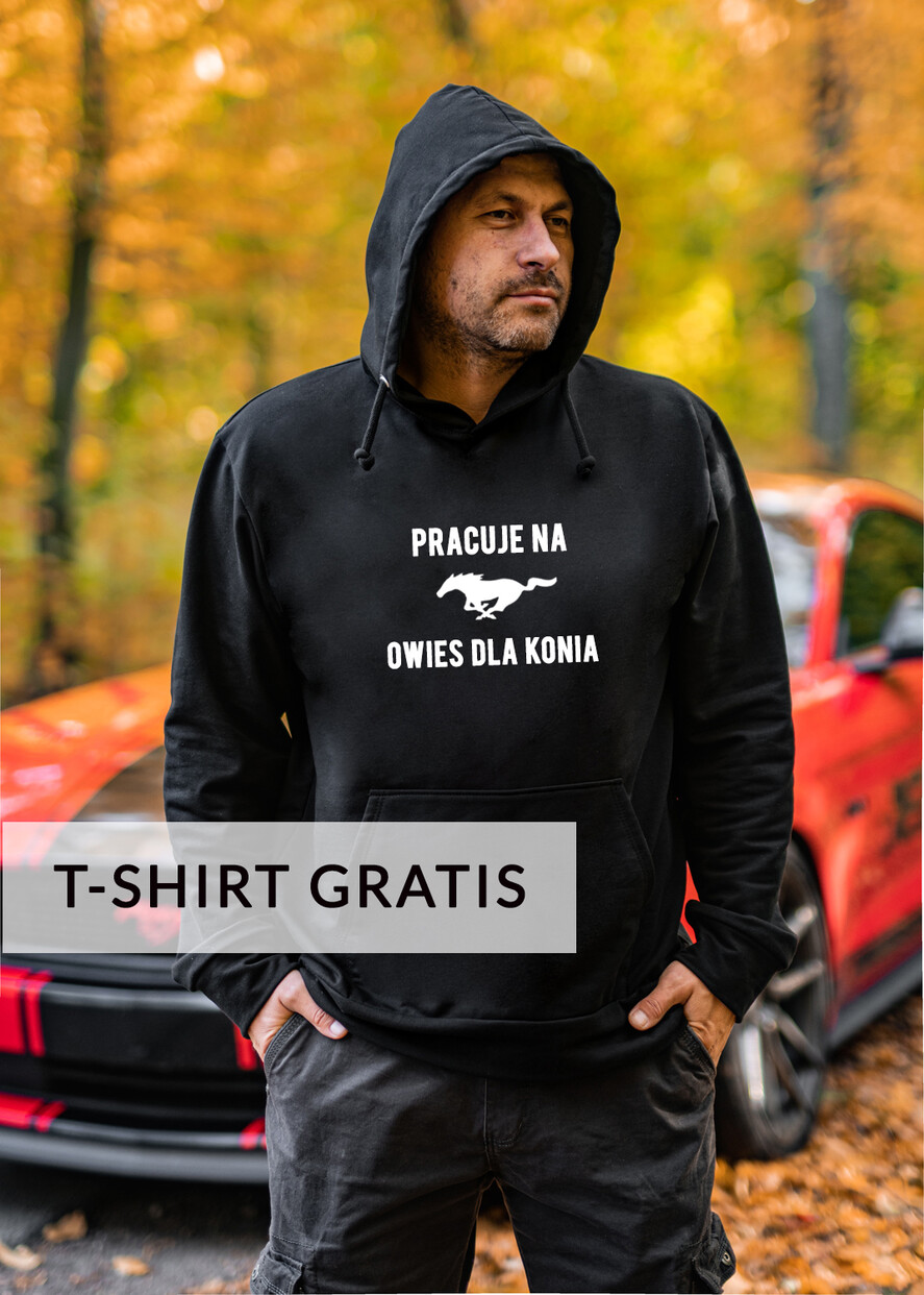 Taka Klasyczna Bluza w czarnym kolorze z kapturem to idealny pomysł na prezent dla motomaniakaDo Tej wygodnej bluzy męskiej z kapturem - dołączamy Tshirt z motywem motoryzacyjnym