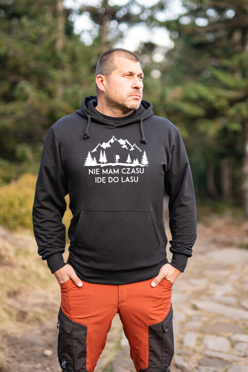 Czarna Koszulka Męska z Tekstem Góry T-shirt Koszulka męska dla Miłośników Gór - Nie mam czasu idę do lasu