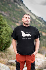 T-shirt dla miłośników Gór - Koszulka Góry - Ciągnie wilka do lasuCzarna Męska Koszulka dla miłośników Gór - T-shirt z motywem Górskim - dla fanów chodzenia po górach