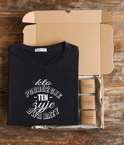 Kupujesz u nas gotowy zestaw prezentowy zapakowany wraz z pudełkiem - taki zestaw prezentowy dla każdego miłośnika wypraw i podróży będzie wspaniałą niespodzianką! Praktyczny Prezent który ma związek z pasją, taki jak koszulka męska czy też bluza dresowa z napisem będzie służył jeszcze długo po imprezie