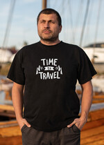 Zapraszamy! Podróże to też nasza pasjaCzarna koszulka męska T-shirt - Time to Travel