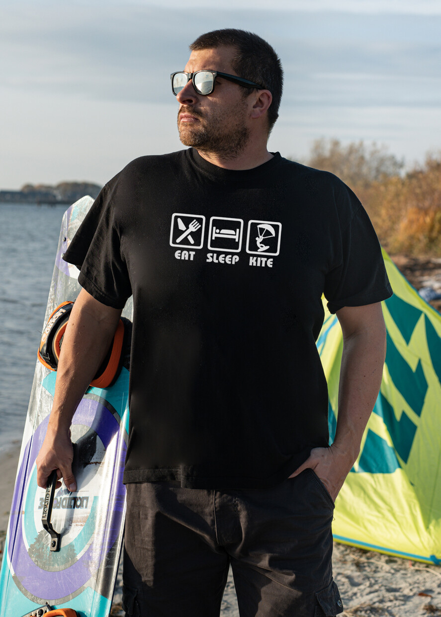Bawełniana Koszulka męska w klasycznej czerni kitesurfing - idealnie nadaje się na prezent dla miłośników sportów wodnych Kitesurfingu