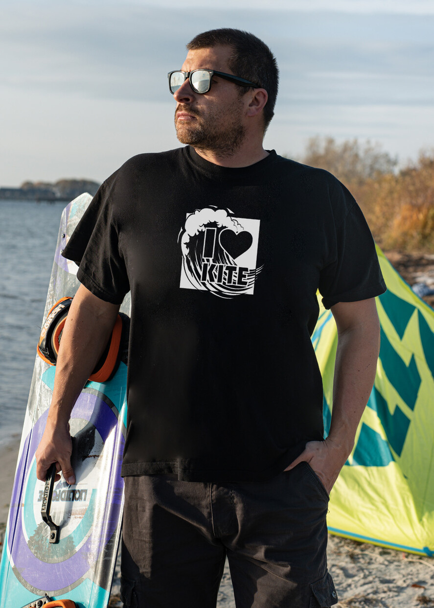 Bawełniana Koszulka męska w klasycznej czerni kitesurfing - idealnie nadaje się na prezent dla miłośników sportów wodnych Kitesurfingu