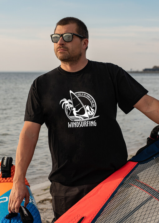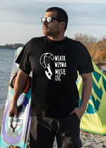 Bawełniana Koszulka męska  w klasycznej czerni kitesurfing - idealnie nadaje się na prezent dla miłośników sportów wodnych Kitesurfingu