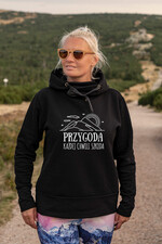 Wykonana z doskonałej jakości bawełny czarna damska bluza z kapturem i górami, to bluza którą pokochasz od pierwszego założenia. Czerń idealnie podkreśla urodę i pasuje na każdą porę roku - nie tylko na jesień. Damska bluza dresowa z kapturem mięciutka i super wygodna, idealna na górskie wycieczki