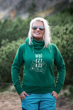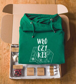 Damska bluza z kapturem zielona - Włóczykij. Pudełko prezentowe dla niej - pomysł na prezent