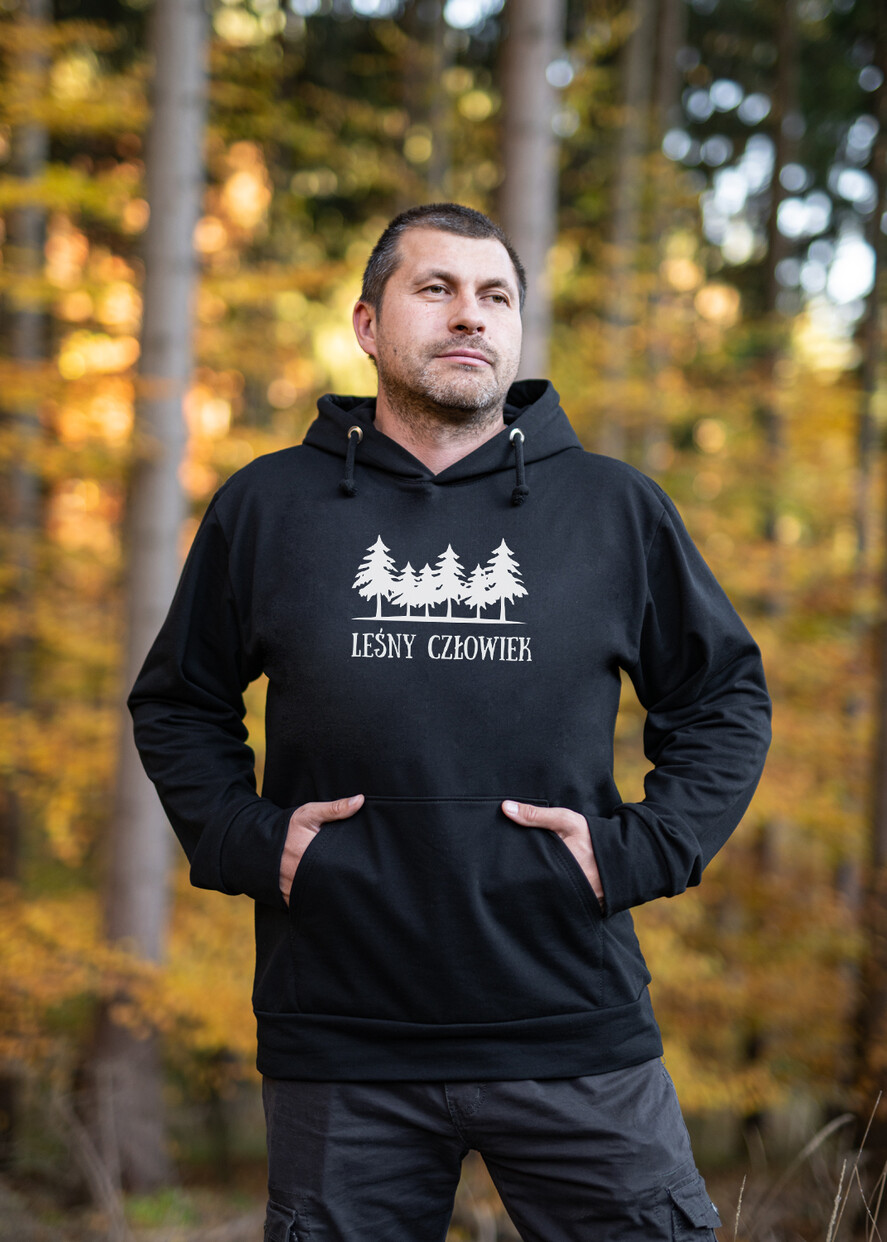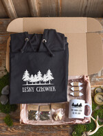 pudełko prezentowe z bluzą męska dresową - Prezent dla Niego - bluza czarna z kapturem i z napisem - Leśny człowiek