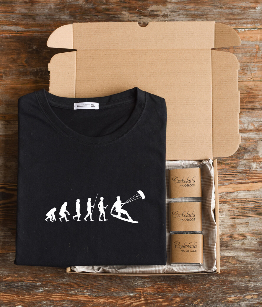 Pudełko prezentowe z koszulką t-shirt to idealny prezent dla dziewczyny fanki kitesurfingu