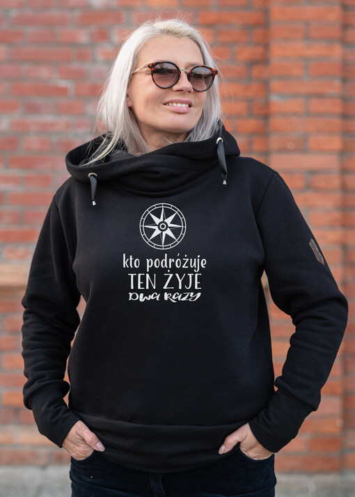 Piękna dzianinowa Bawełniana Koszulka męska w klasycznej czerni z motywem podróżniczym - idealnie nadaje się na prezent dla miłośników wycieczek w nieznane.