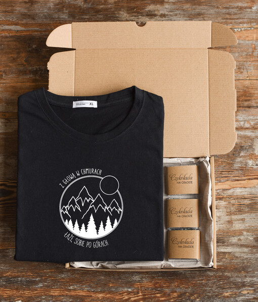 Top męski, koszulka dla miłośników Gór. T-shirt z motywem Górskim w pudełku prezentowym z dodatkami.